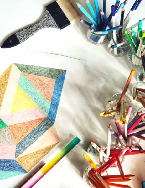 Mostly working with coloured pencil, her drawings explore objects and forms as carriers of stories and cultural references. Informed by her experience in the auction world and decorative arts, her visual language brings together artefacts, motifs, and architectural elements in compositions that are both precise and expressive.