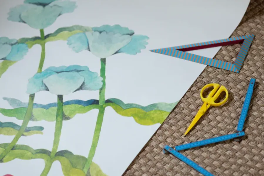 each decor to the project: number of strips and dimensions, placement of motifs, colors, etc.
